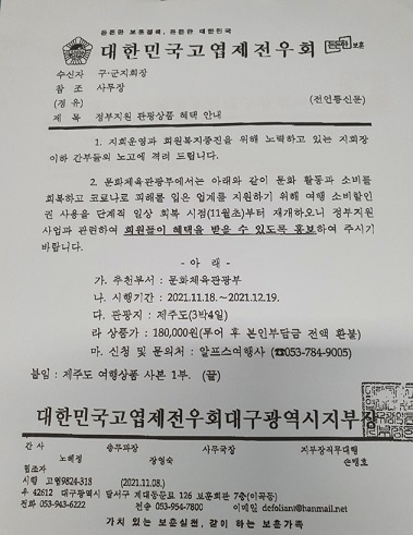 ¹®Ã¼ºÎ¿¡¼, ±¹°¡À¯°øÀÚ¿Í ±× À¯Á·¿¡°Ô Á¦ÁÖµµ 3¹Ú 4ÀÏ ¿©Çàºñ Àü¾×À» Áö¿øÇÑ´Ù´Â, ´ë±¸°í¿±Á¦Àü¿ìȸ¿¡¼ º¸³½ °ø¹®À» º¸¿©ÁÖ¸ç ÀÚ³×¿Í »óÀÇÇÏ¿´´Ù.